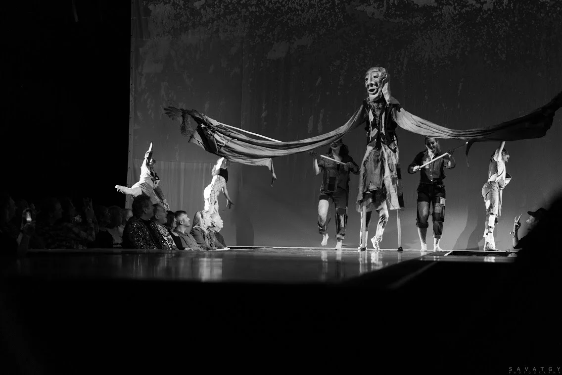 The Blind Man and the Hunter - He sees with his ears, and he hears with… his heart. A traditional tale from Africa. Giant Masks, Projection, Giant Birds, Marimbas